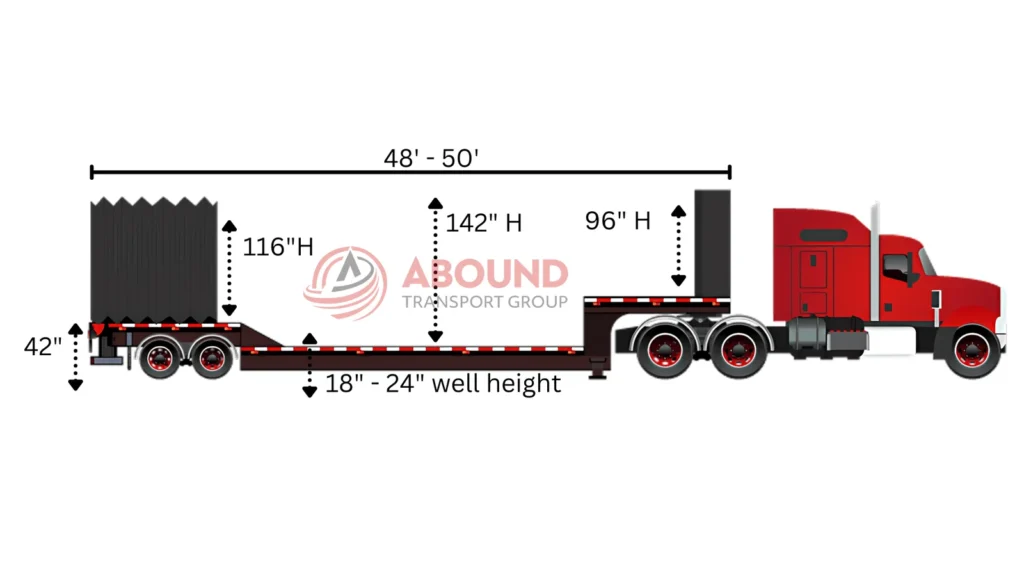 Abound Transport Group deploys multi-axle RGNs and specialized dual-lane trailers to safely distribute extreme loads while staying fully compliant with DOT bridge formulas and state regulations.