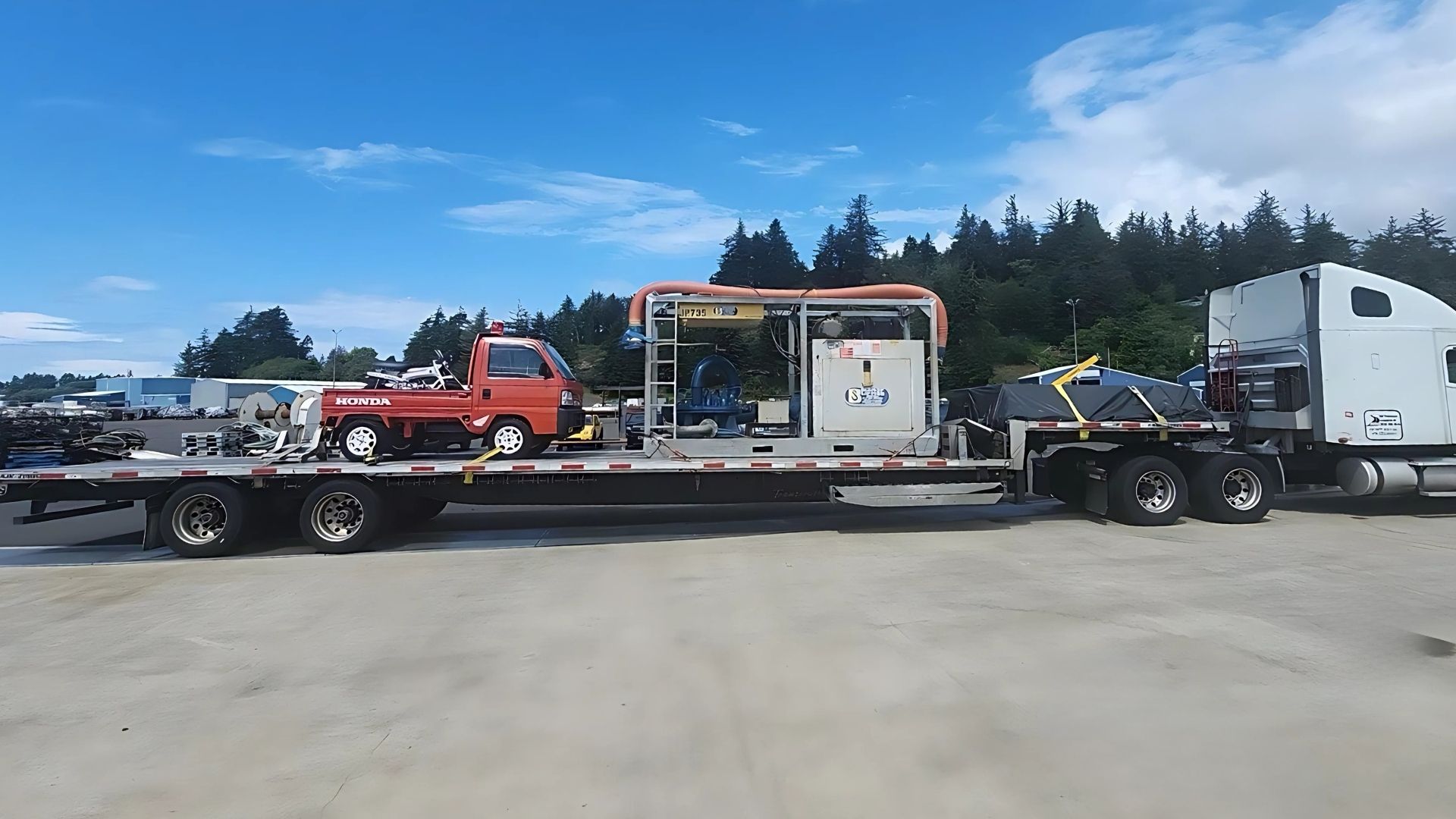 We operate a large open-deck carrier network for moving machinery and equipment of all sizes. Our team manages ramps, securement, and safe loading to move freight reliably.